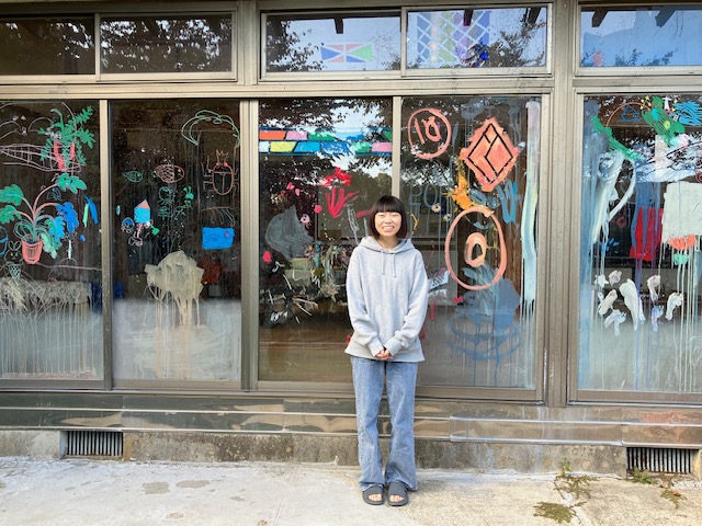 写真3枚目:まさに子どもたちが思いのままに描いた芸術作品。描かれたガラスのキャンバスは次回開催までの期間、このまま展示されています。