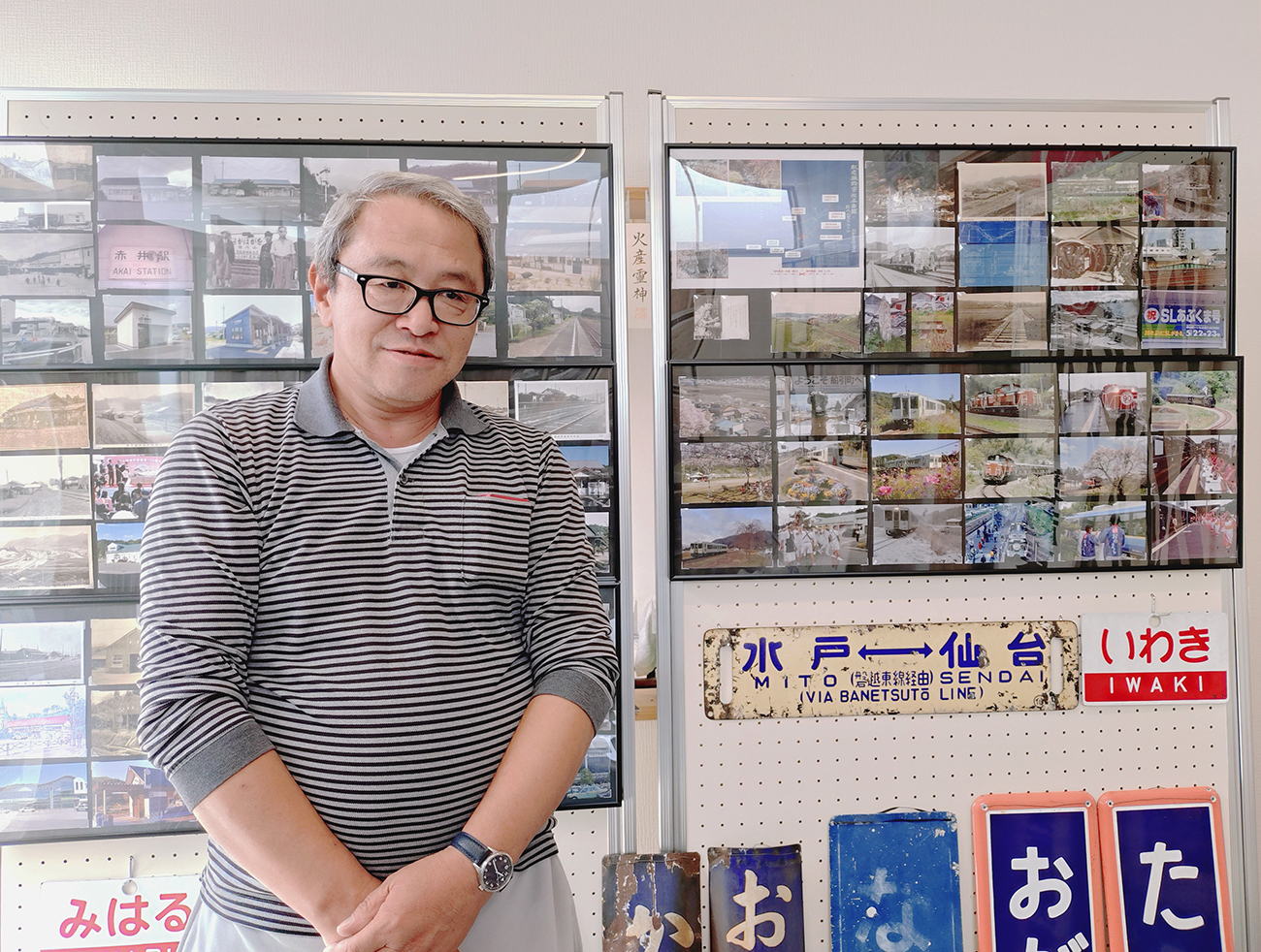 子どものころから鉄道が大好きだった渡邊伸二さんは、出身の小野町に早期退職してUターンしました。新たな挑戦の始まりです。鉄道関連のものなどを扱う古物商を営みながら、通学にも使っていた磐越東線とその沿線に暮らす人々の情報を発信するギャラリー「東方文化堂」を、小野新町谷津作踏切の傍に2020年6月に開きました。