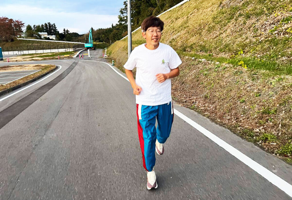 写真2:休日は、趣味のランニングで汗を流している小菅さん。その足取りは50歳を超えたとは思えず、非常に軽くて軽快そのものだ。フットワークの良さを求められる今回のミッションのため、足腰の健康と体調維持は欠かせない。